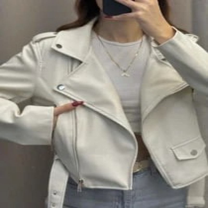 Qadınlar üçün dəri gödəkçə FF35 as1, ağ, dəri, ölçü M