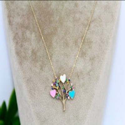 Zinət boyunbağıları qızıl 585 əyar, ümumi rəngli çırkon qaşlarla, 2.32 qram - boyunbağ_ES_G_0807